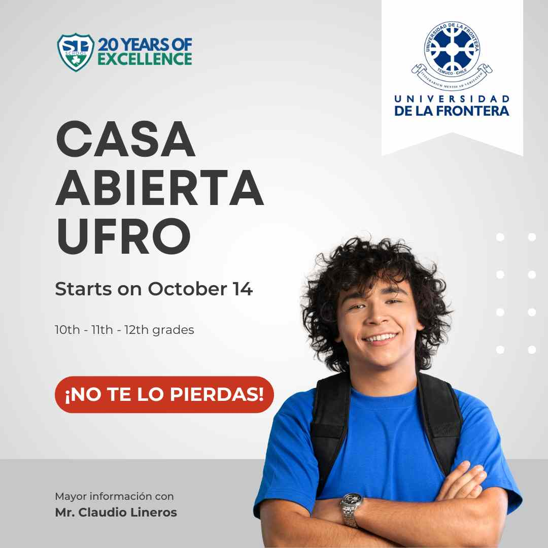 Nuestro colegio tiene el agrado de invitar a toda nuestra comunidad educativa —estudiantes y apoderados— a participar en la Casa Abierta UFRO, una valiosa instancia organizada por la Universidad de La Frontera.